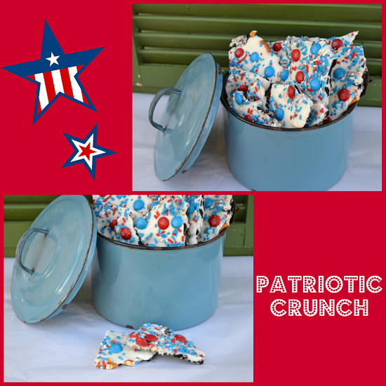 To keep with the theme of Red, White and Blue I wanted to make something super easy but festive so I came up with this quick and simple recipe based on Bark that I make for the Christmas Holiday Season. I needed a fun name for it so I came up with Patriotic Crunch and it seemed appropriate with Independence Day around the corner. This is so super duper easy but everyone will love it! I made it today and by the end of the day I think my family, I mean me, had eaten about half of it. Watch out...it is addictive!
